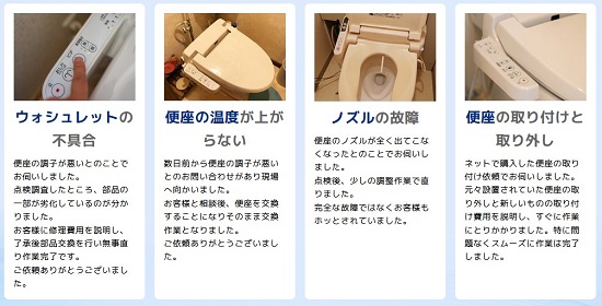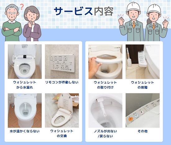 岡崎市で対応可能な温水便座、ウォシュレットの修理サービスとなります。その他のトラブルやご相談に関しましてはお気軽に受付窓口までお問い合わせください。